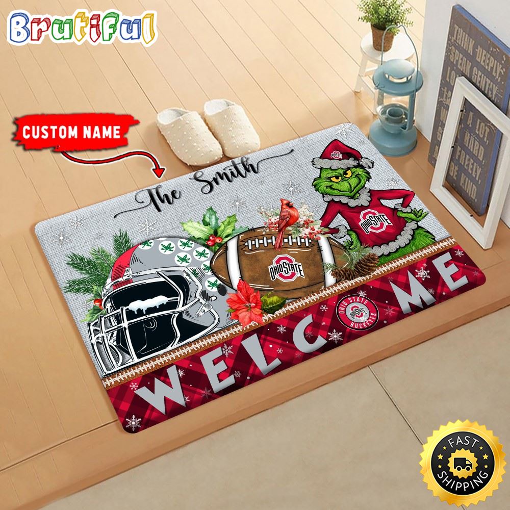 NCAA Ohio State Buckeyes Doormat Grinch Christmas Welcome Custom Name Football Doormat