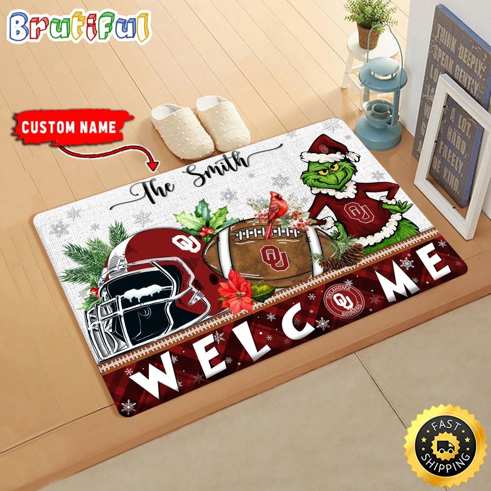 NCAA Oklahoma Sooners Doormat Grinch Christmas Welcome Custom Name Football Doormat