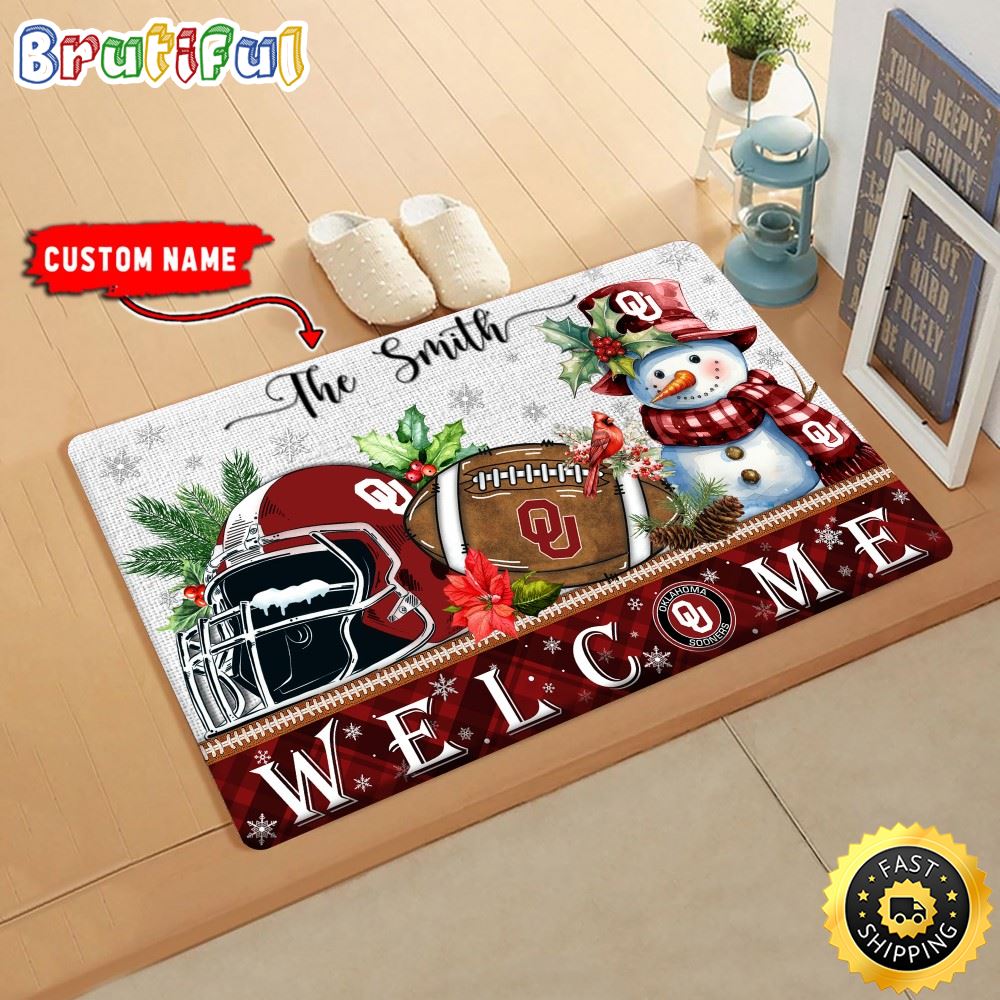NCAA Oklahoma Sooners Doormat Welcome Christmas Custom Name Football Doormat