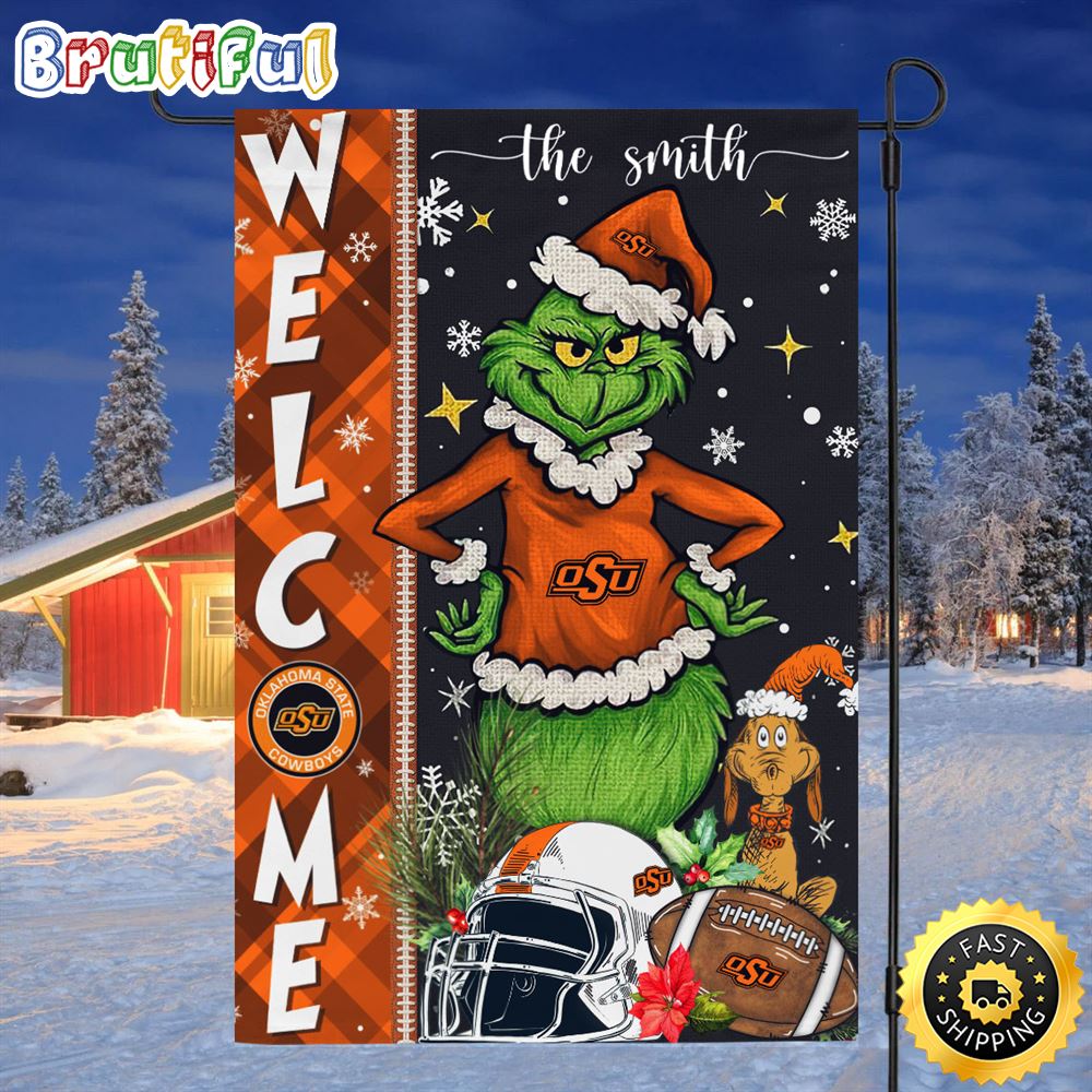 Customize NCAA Oklahoma State Cowboys Garden Flag Grinch Football Christmas Welcome Garden Flag