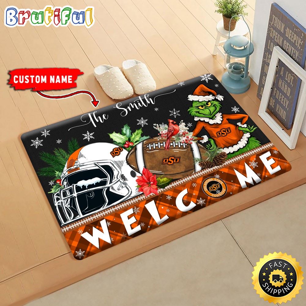 NCAA Oklahoma State Cowboys Doormat Grinch Christmas Welcome Custom Name Football Doormat