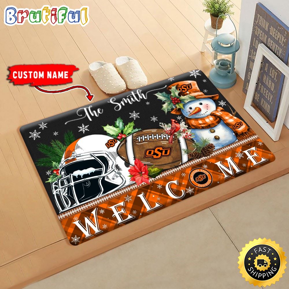 NCAA Oklahoma State Cowboys Doormat Welcome Christmas Custom Name Football Doormat