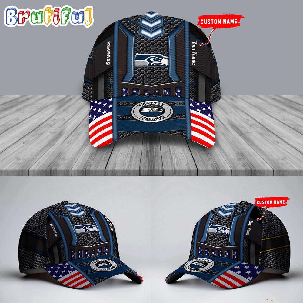 Custom NFL Seattle seahawks America Flag Cap, America Flag Football Cap
