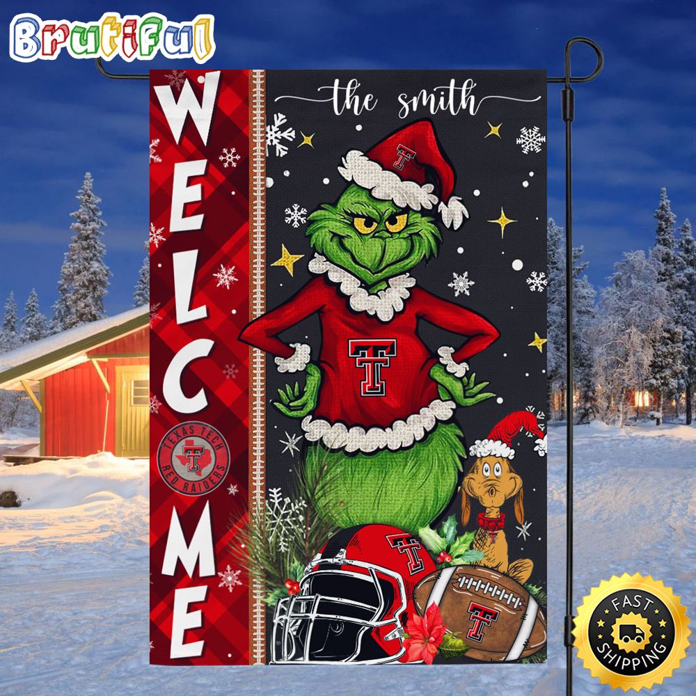 Customize NCAA Texas Tech Red Raiders Garden Flag Grinch Football Christmas Welcome Garden Flag