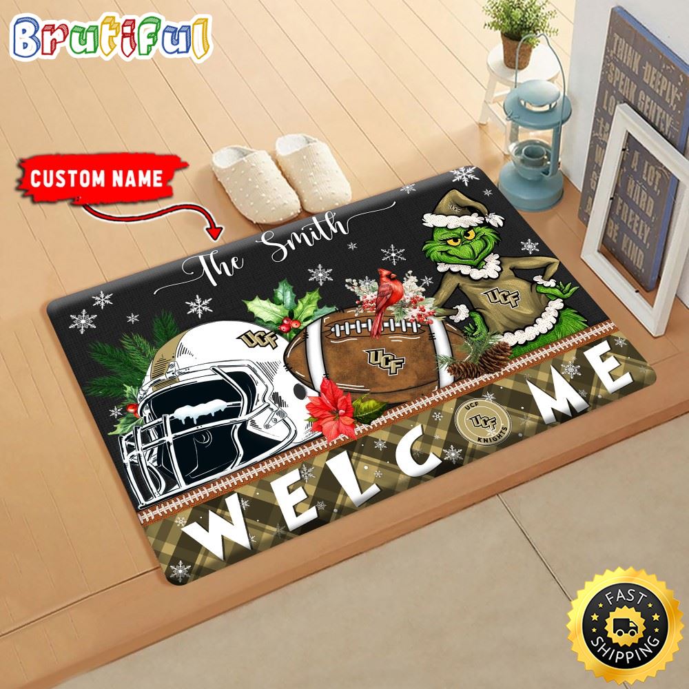 NCAA UCF Knights Doormat Grinch Christmas Welcome Custom Name Football Doormat