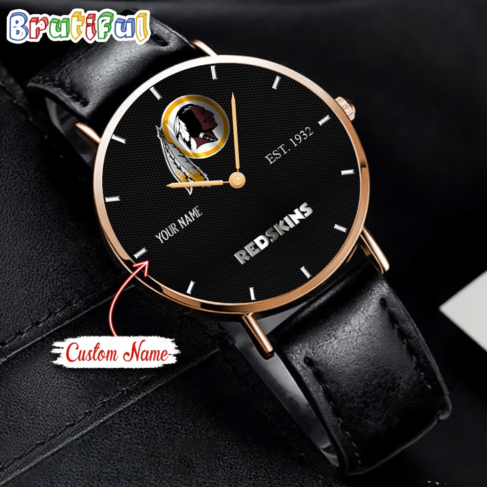 NFL Washington Redskins Watch Custom Name Black Stitched Leather Watch