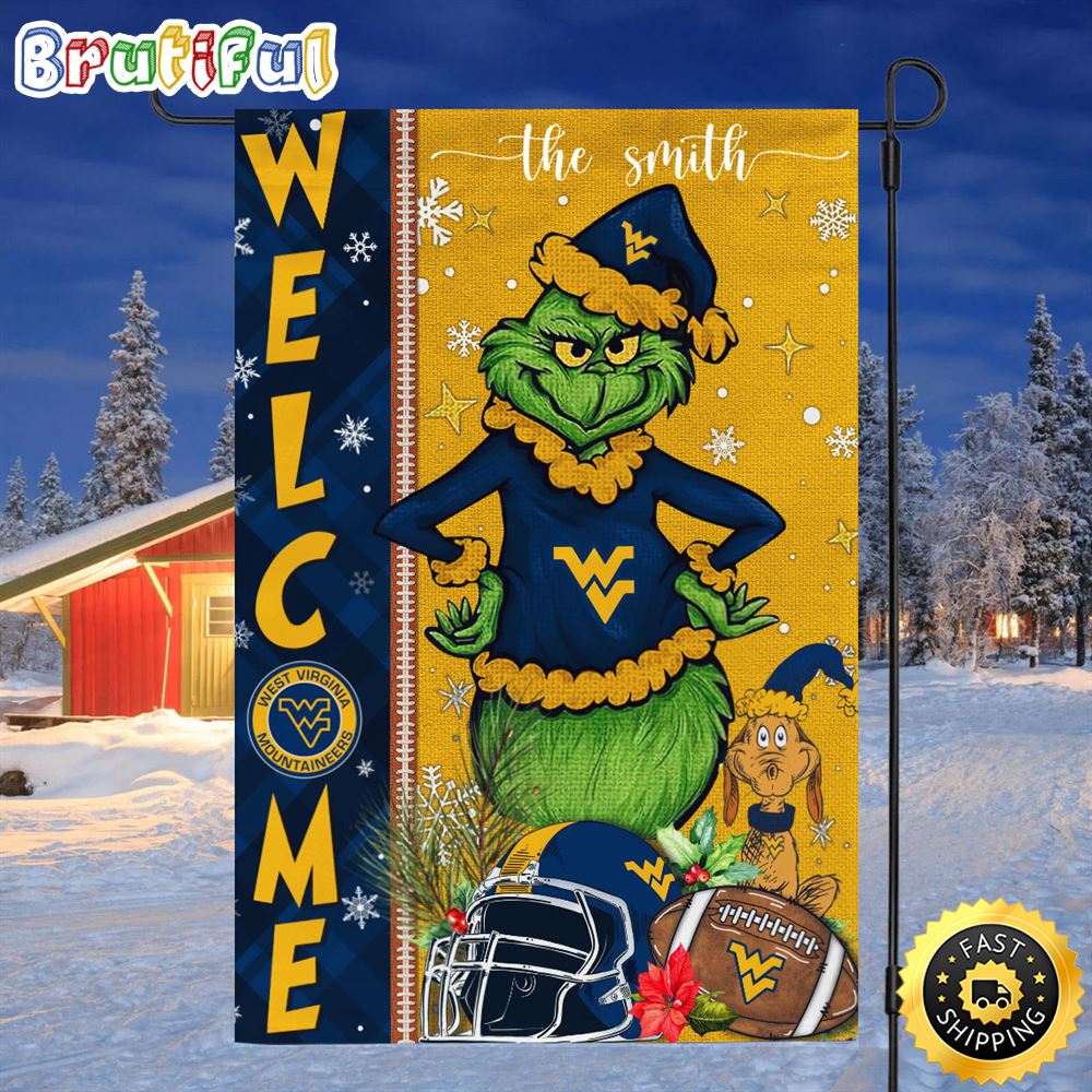 Customize NCAA West Virginia Mountaineers Garden Flag Grinch Football Christmas Welcome Garden Flag