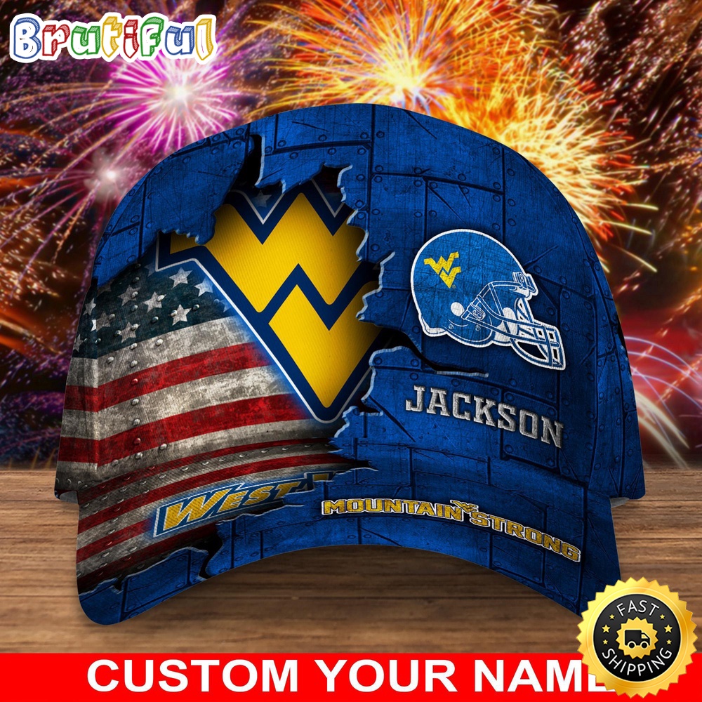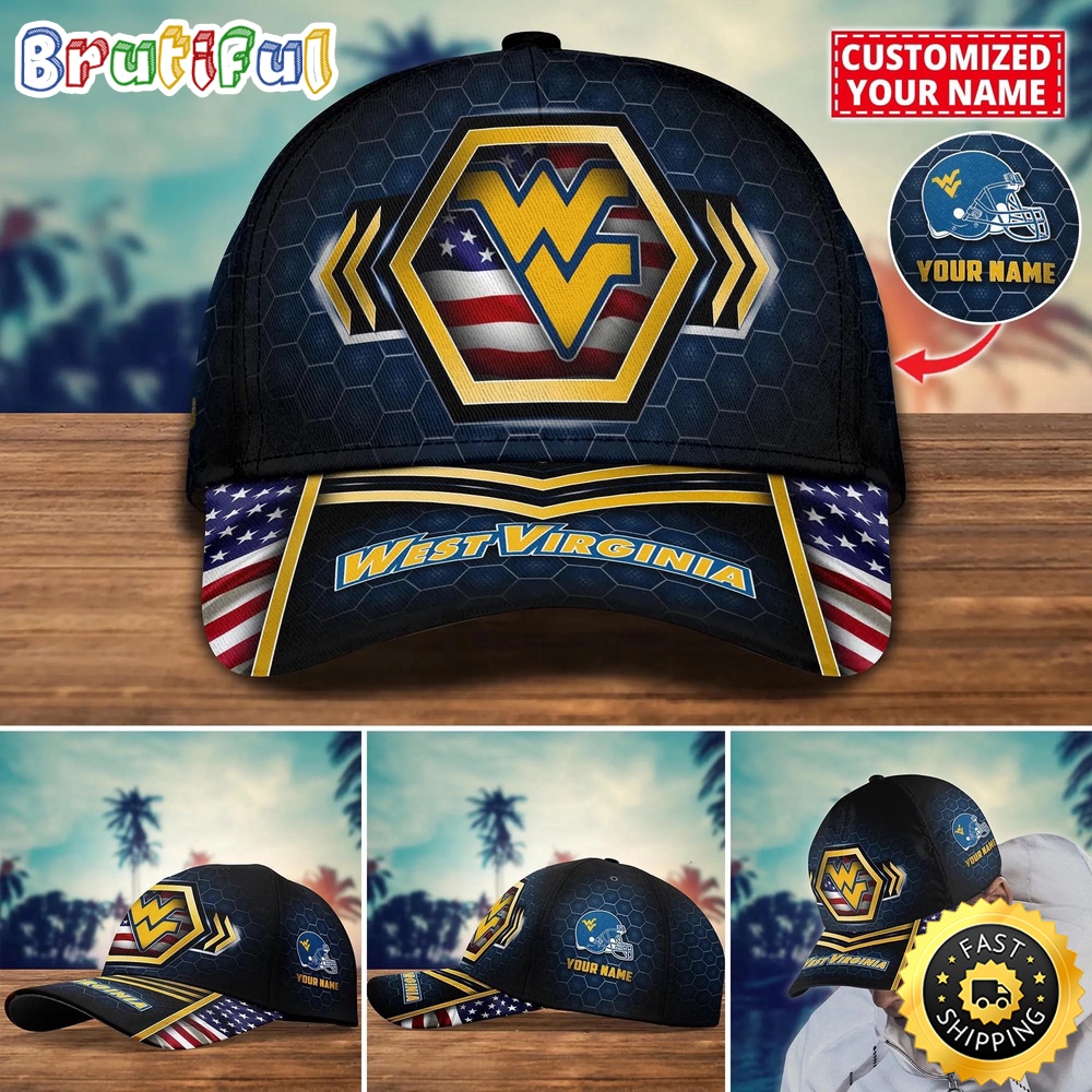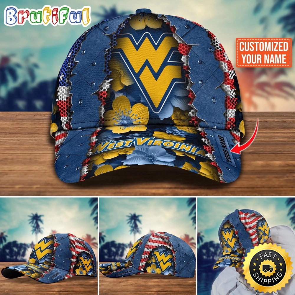 NCAA West Virginia Mountaineers Baseball Cap Flag Custom Name Cap