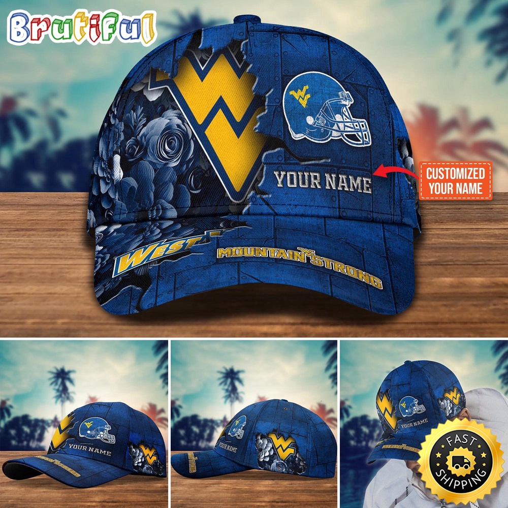 NCAA West Virginia Mountaineers Baseball Cap Flower Custom Name Cap