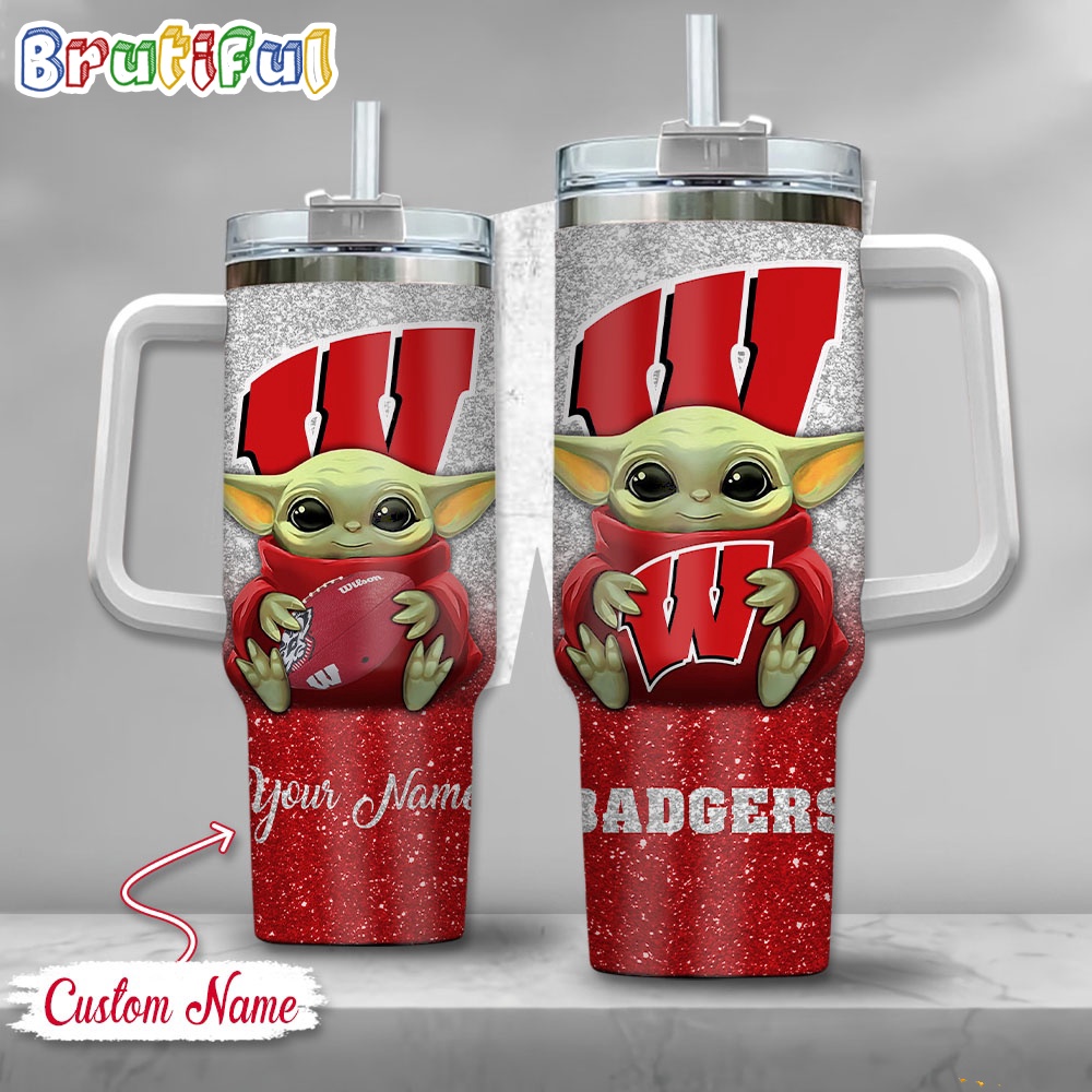 NCAA Wisconsin Badgers Tumbler Baby Yoda Customzed Handle Cup