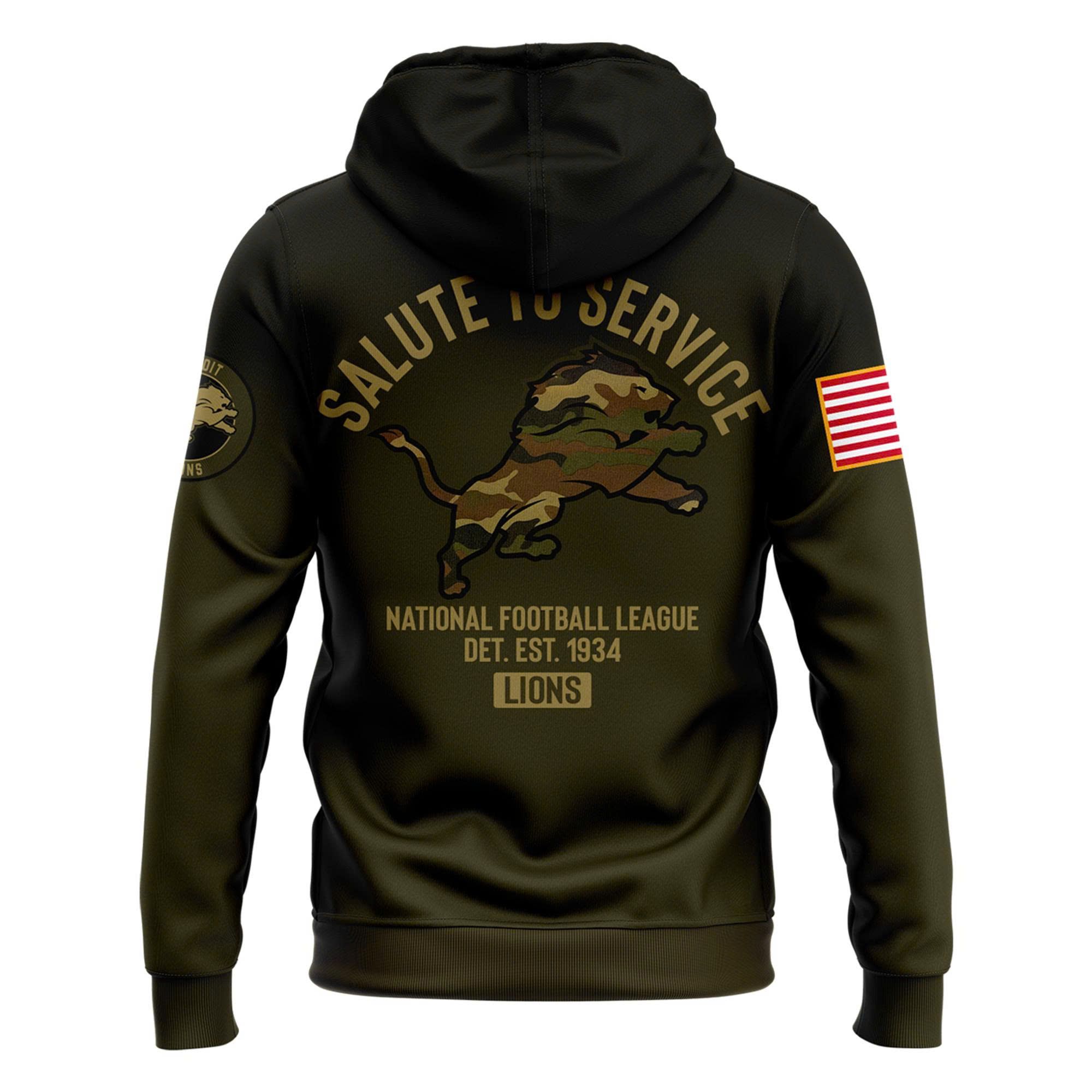 Detroit Lions 2025 Salute to Service Fleece Pullover Hoodie